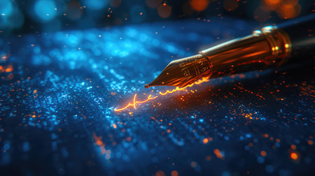 A fountain pen delicately placed on a vibrant blue background, capturing timeless elegance and artistic inspiration.