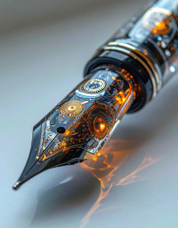 A macro view captures the soul of a unique fountain pen, where classic elegance meets steampunk ingenuity.