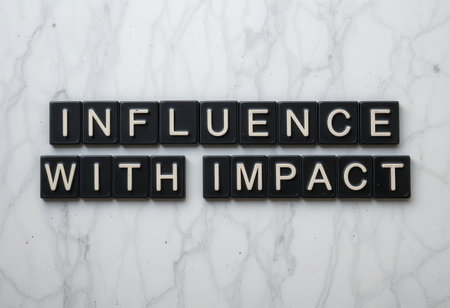 A creative composition featuring the phrase Influence with Impact arranged on a marble background, perfect for motivational and inspirational use in various contexts.