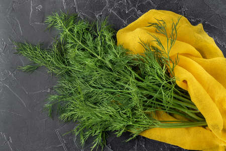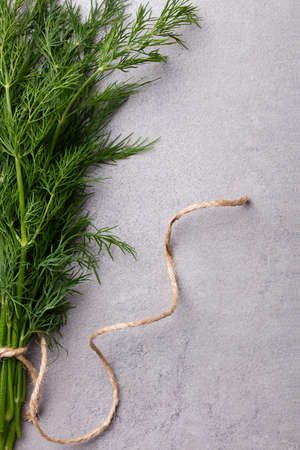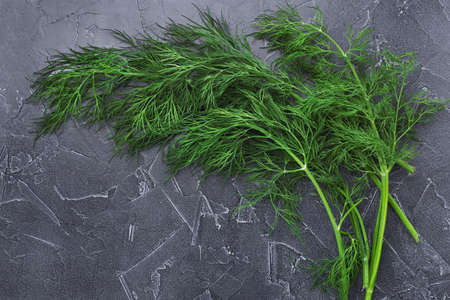 Fresh green dill on grey background.