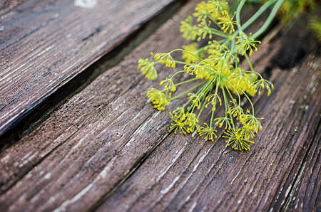 Green dill leaves on a wooden background