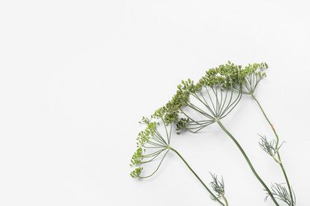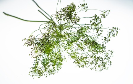 Sprig of dill flower in white background.