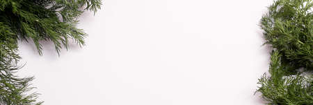 Banner with mock up. Fresh dill on a white background.
