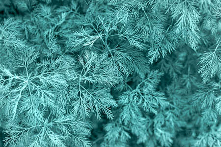 Beautiful delicate natural background in trendy color of 2021 - Tidewater Green, 2f4f4f. Dill or herringbone close-up, natural background, universal pattern. Gardening, plant growing. View from above.
