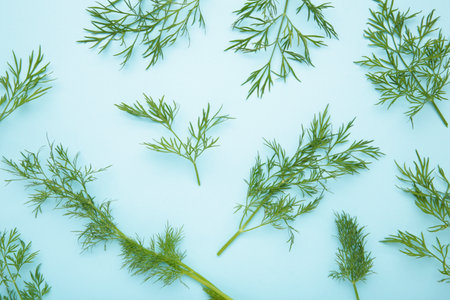 Dill on blue background. flat lay. food for vegetarians