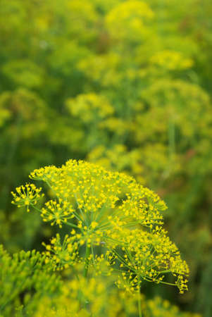 Yellow flowers of dill (Anethum graveolens). Close up.