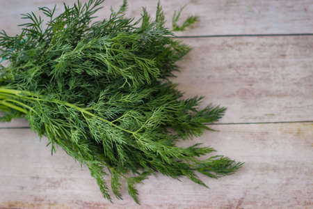 Juicy green dill on the table. Close-up selective focus