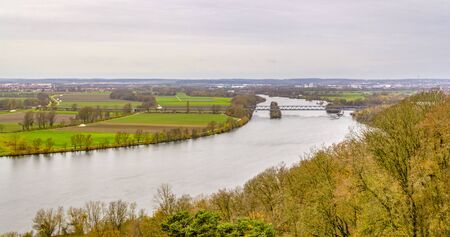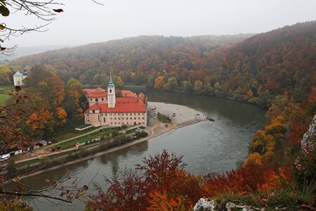 high angle scenery around Danube river near Regensburg in Bavaria in Germany at autumn time