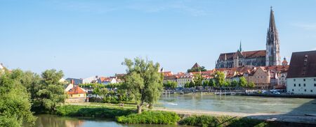 Panorama of old Regensburg embankment ,Bavaria,Germany,Unesco heritage