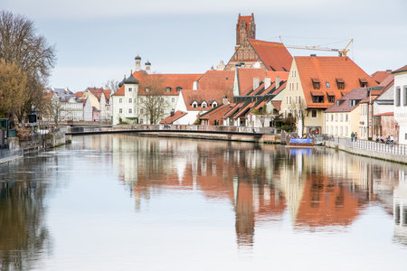 LANDSHUT, GERMANY - MARCH 31. Picturesque old town of Landshut, Germany on March 31, 2016. Landshut is the largest city of lower Bavaria. Foto taken from Hammerinsel with view to the north along the river Isar.