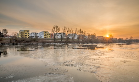Sunrise above Reinhausen in the Winter - Regensburg, Germany,