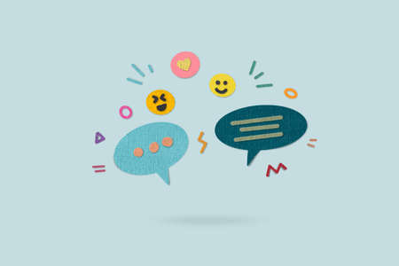 two conversation bubbles with a blue background or isolated background. sample for writing space. copy space for text
