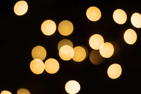 Blurred focus of circular bokeh lights in warm golden tone for abstract background. Seasons greetings, Merry Christmas and Happy New Year celebrations concept.