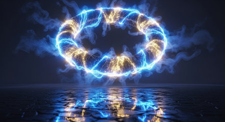 3D Illustration of a Glowing Electric Circle on a Dark Background