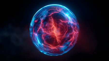 Glowing plasma ball emits colorful electric currents, creating a mesmerizing and surreal atmosphere
