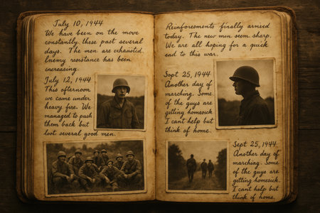 Historic Military Journal Showing Personal Reflections and Vintage Images