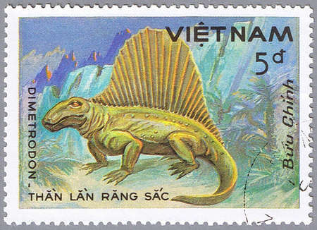 VIETNAM - CIRCA 1984: A stamp printed in Vietnam shows Dimetrodon, series devoted to prehistoric animals, circa 1984
