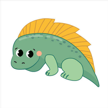 Little spinosaurus. Cartoon dinosaur picture. Cute dinosaurs character. Flat vector illustration isolated on white background.