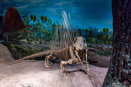 Drumheller, AB Canada - AUGUST 14, 2014: Dimetrodon fossil is on exhibition in Royal Tyrrell Museum of Palaeontology.