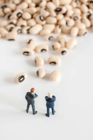 Miniature people chef select best of quality moong dal namkeen fresh and crisp. Concept food for healthy and select best of quality. grains dried vegetarian food ingredient.