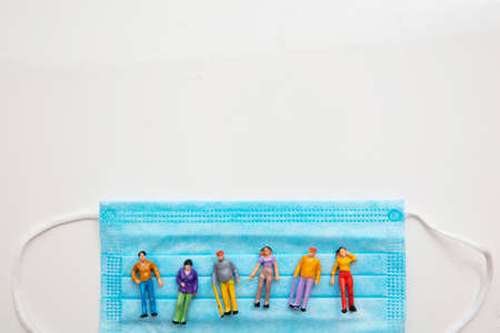 Miniature travellers at a train station. Concept of people keep distance in public to protect COVID-19 coronavirus spreading concept