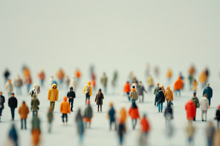 Unique Individual Standing Out Among Crowd of Miniature Figures in Colorful Background