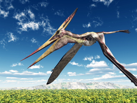 Quetzalcoatlus flying over mountains 3D illustration