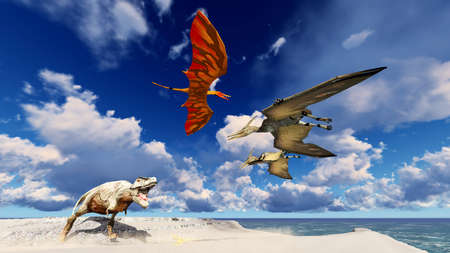 Velociraptor and pterodactyl 3d rendering