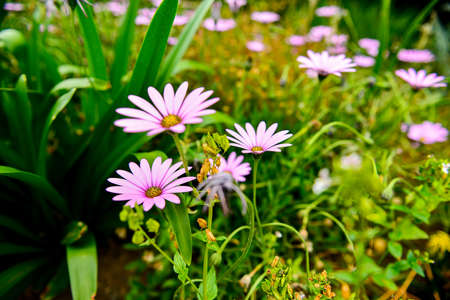 African daisy pink purple flowers blooming in spring
