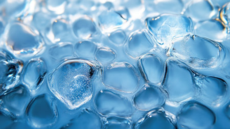 Close-up of frosty blue ice bubbles with light reflections. That the image is generated using AI.