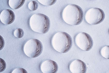 Water drops on white abstract background, top view