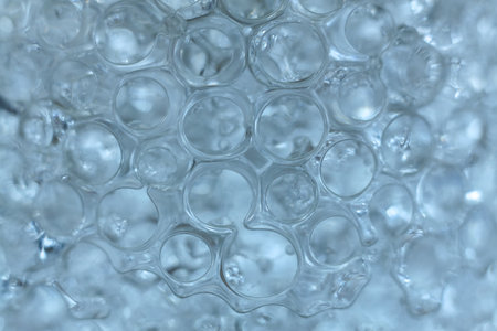 Soapsuds bubbles as background. Water background with bubbles. Flat lay.