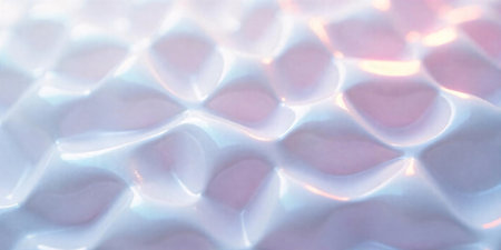 Macro image of a white honeycomb-shaped object with a shiny surface reflecting iridescent light. top view, AI Generated.
