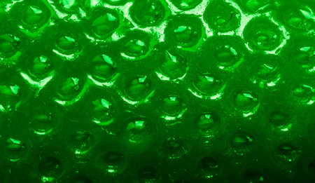 A dramatically lit photograph of metallic green bubble wrap