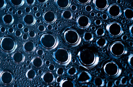 Macro shot detail of water drops with unique pattern. Water drops texture background. Round shape of droplet on dark background. Different size of water drops abstract background. Droplet of water