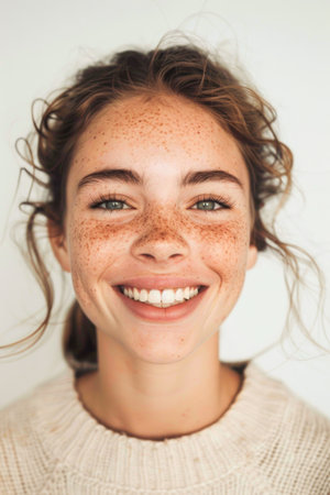 Cheerful Young Girl with Freckles and Messy Hair