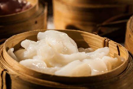 Hong Kong steamed dumplings and rice rolls in dimsum restaurant