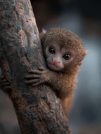 A brown striped monkey is perched on a branch, high quality, high resolution