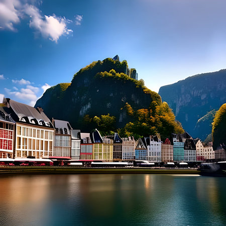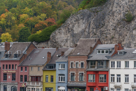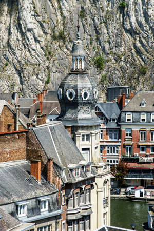 Dinant, Belgium - August 24, 2015 - The houses on the coast of Meuse river in Belgian old city.
