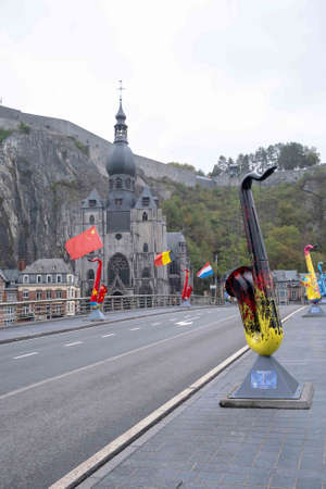 Dinant, Belgium - October 13 2020 : The streets of beautidul city of Dinant home of Adolphe Sax, iinventor of the saxophone.
