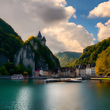 DINANT, BELGIUM – JUNE 15, 2014: The Meuse River passing through the town of Dinant, located in the Walloon, Belgium.