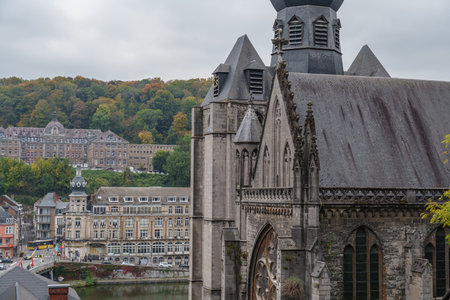 DINANT, BELGIUM - OCTOBER 31, 2017: The Collegiate Church of Notre-Dame is the most important landmark of Dinant, located in the Waloon region, Belgium