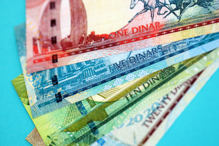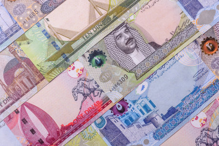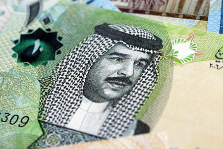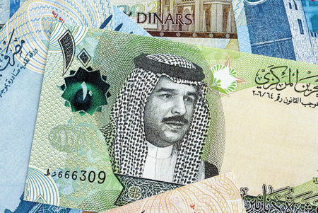 Bahrain paper money, dinar banknotes as currency for exchange or travel. Bahraini money as a business background