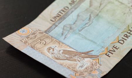 Close up Dirhams currency, AED, Bank note and coins, United Arab Emirates