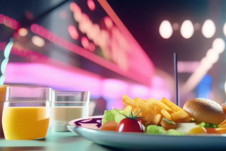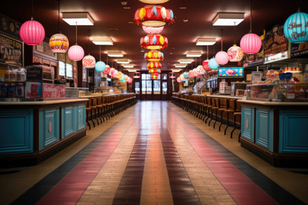 fast food restaurant with retro decor and classic tunes playing in the background, created with generative ai