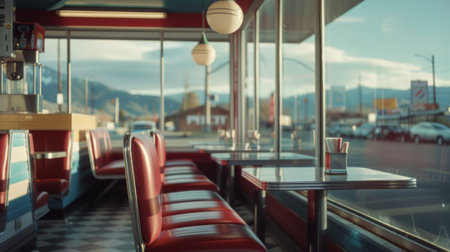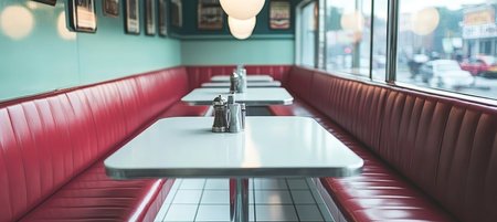 Charming Retro Booths in a Vintage Diner Interior with Classic American Restaurant Aesthetic