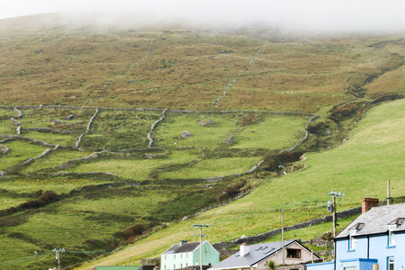 Typical Irish landscape on windy day in Dingle peninsula