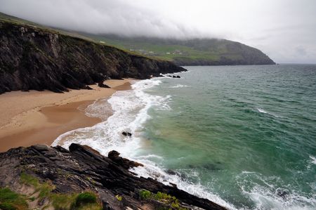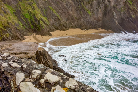 Landscape view of Coumeenoole Bay on the Dingle Peninsula in Ireland