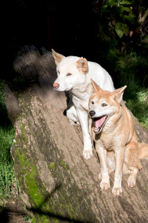 Two dingoes look for possible food near Melbourne, Victoria, Australia