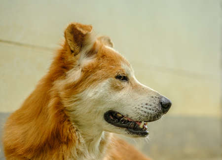 Brown dog isolated on a white background. Stray dogs female brown-haired.Dogs living on a flyover. Homeless dogs Positive stray.